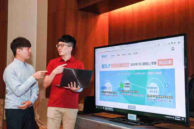 GOLF 为国内首见由企业主动发起的产学合作联盟,,,透过云端数字学习平台,,将赏金国际、、、仁宝和纬创三家企业内部传承、、淬炼已久的 42 门专业人才培训课程,,透过在线平台无私分享给学界,,并提供超过 1200 个在线学习名额,,透过专业课程先修、、、、企业场域实作,,,学生不仅可取得实习机会,,,,一窥企业内部实务运作,,,若表现良好更能提早取得正式聘书,,,毕业即可就业。。在 GOLF 学用接轨联盟推动下,,,目前已有中央、、中兴、、、北科大、、台科大、、、、中华、、、龙华、、、、明志、、、明新、、、、圣约翰、、淡江、、、、大同、、、元智等 12 所大学加入,,,促进学校教育与产业需求之间的人才能力接轨,,,,开创企业和学校紧密结合、、共创双赢的产学合作模式。。。
